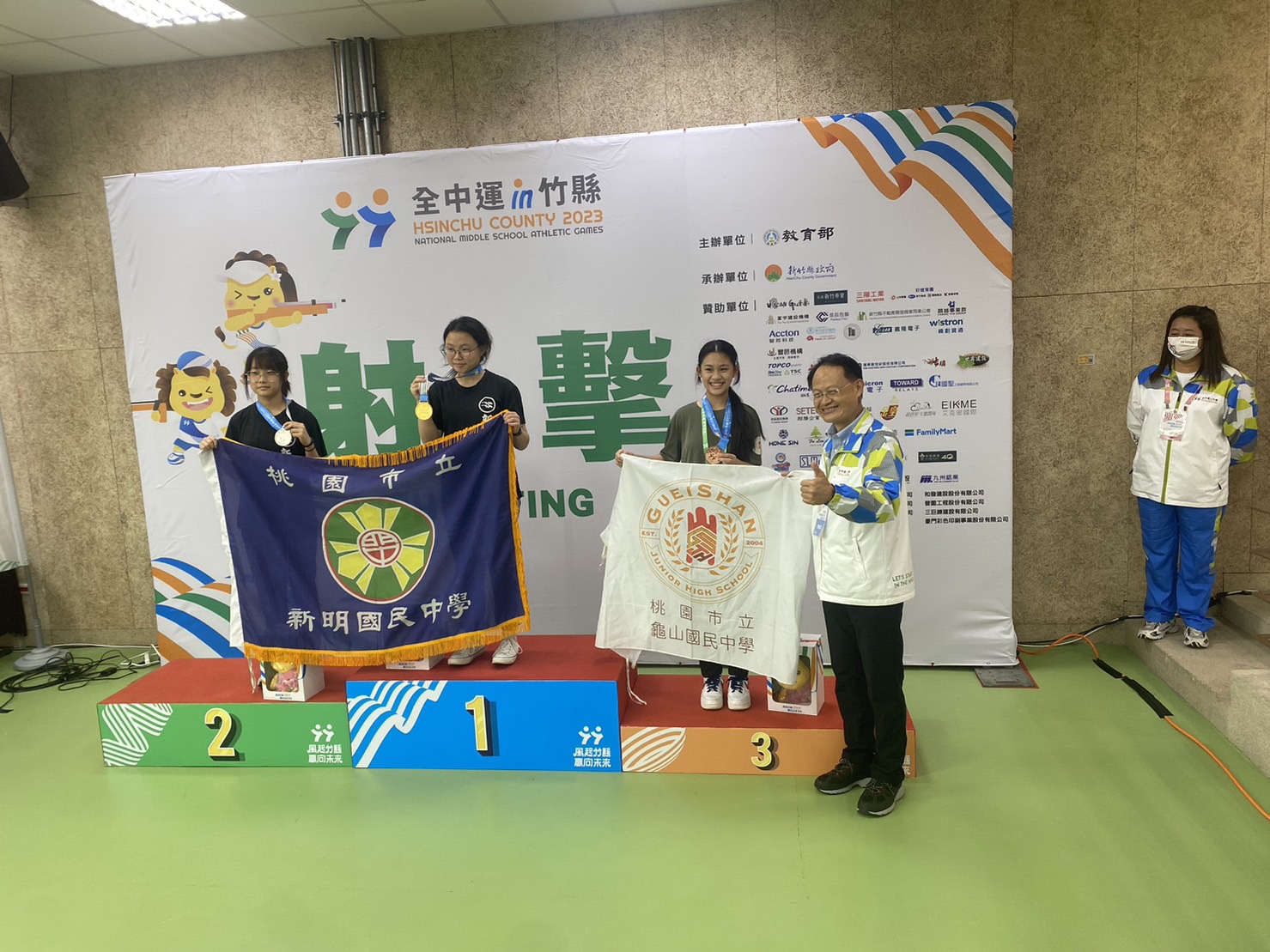 恭喜本校913蔡婕嬣同學參加112年度全國中等學校運動會國女10公尺空氣手槍個人賽榮獲銅牌;806闕子紜同學參加112年度全國中等學校運動會國女10公尺空氣手槍個人賽榮獲第八名,感謝蘇又申老師帶隊,桑和弟教練指導