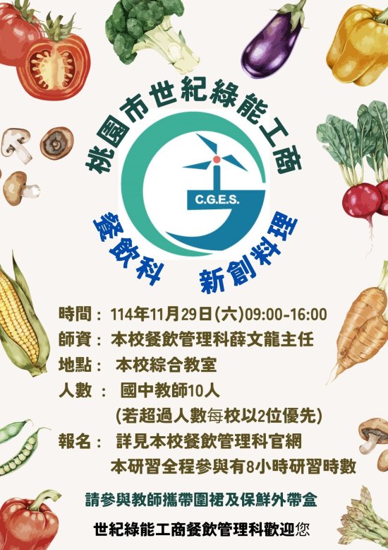 (三)研習地點:世紀綠能工商餐飲管理科。