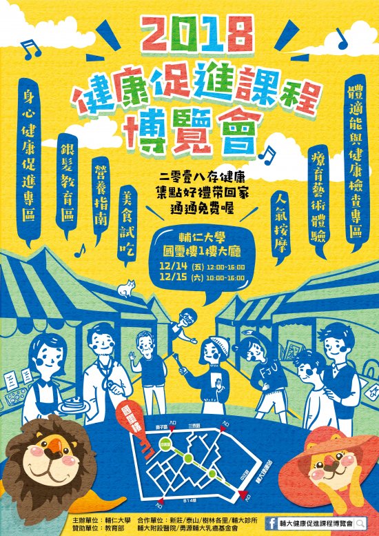 主旨:本校於107年12月14日(五)至12月15日(六)舉辦「輔仁大學2018健康促進課程博覽會」,敬請惠予公告並鼓勵師生踴躍參與,請查照。