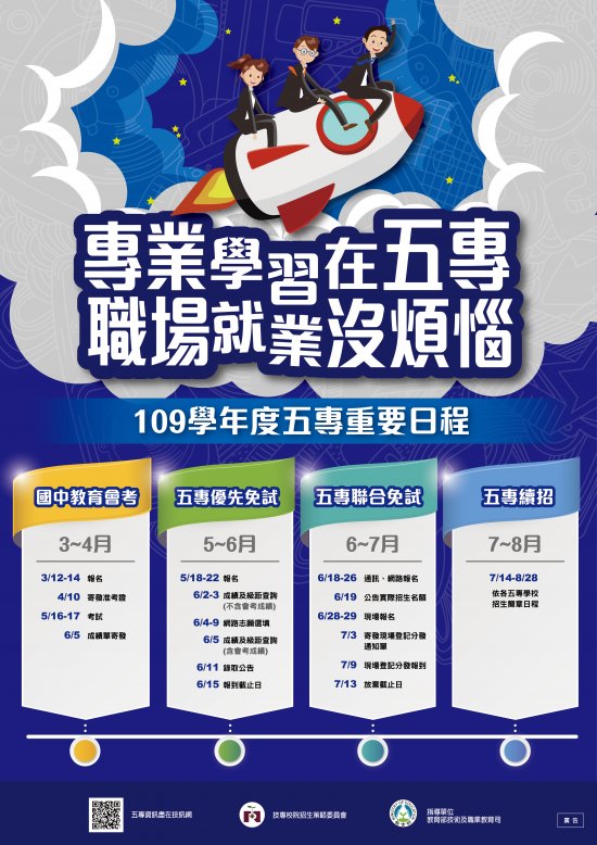 二、109學年度五專各入學管道招生資訊亦同步公告於本會「技訊網」,歡迎師生多加查詢與運用。技訊網網址:https://techexpo.moe.edu.tw/search/。