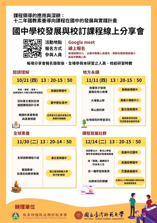 國立臺灣師範大學辦理「課程領導的應用與深耕」:十二年國教素養導向課程在國中的發展與時間」計畫